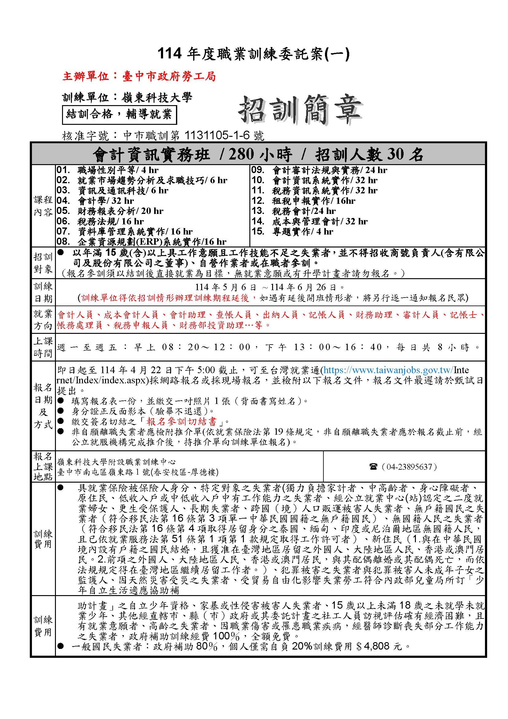 【114年會計資訊實務班】-招訓簡章